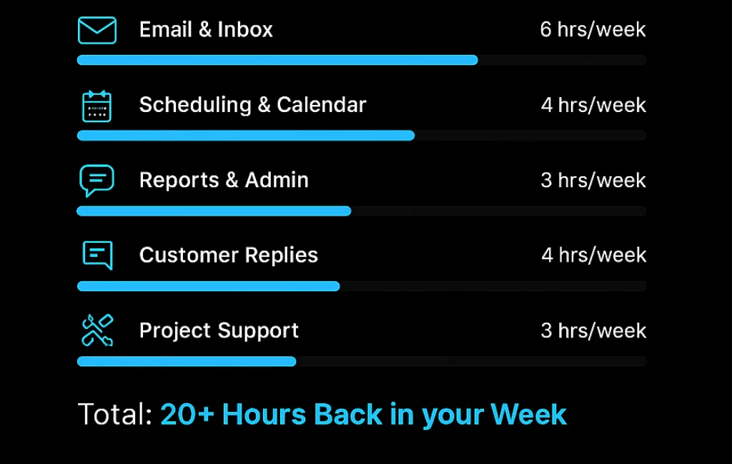 Every XVA is trained in our proprietary AI Certification program—so they know how to use tools like ChatGPT, automation apps, and our custom AI assistant to get more done in less time.